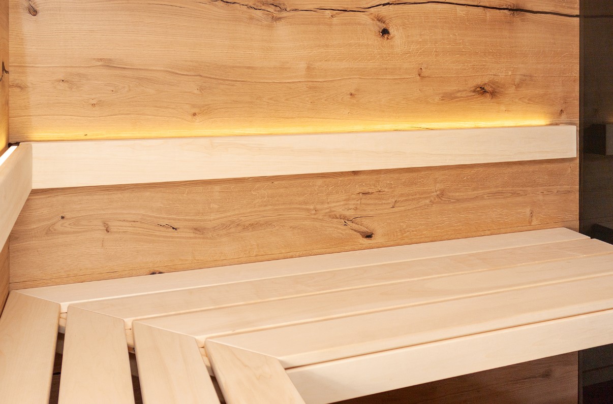 - Die hohe Wärmespeicherkapazität der Massivholzsauna gewährleistet ein mildes und erholsames Saunaklima
