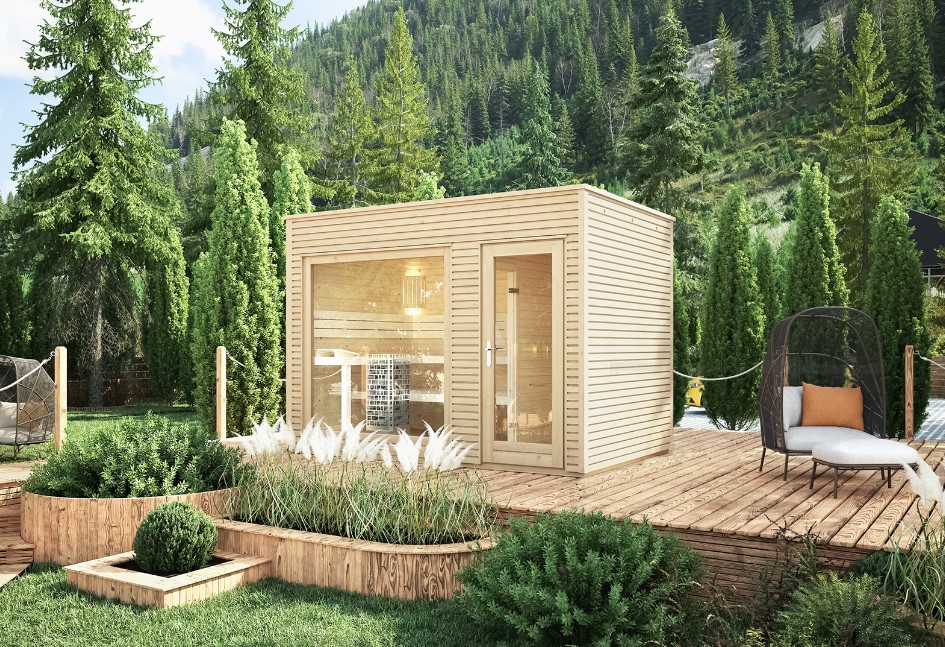- Innenvertäfelung: 16 mm Saunaprofilholz aus Polarfichte, in speziellem Softline-Profil