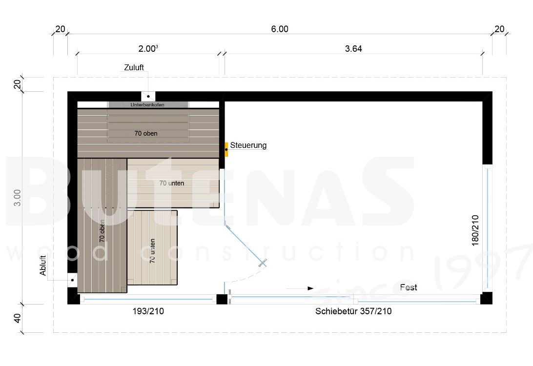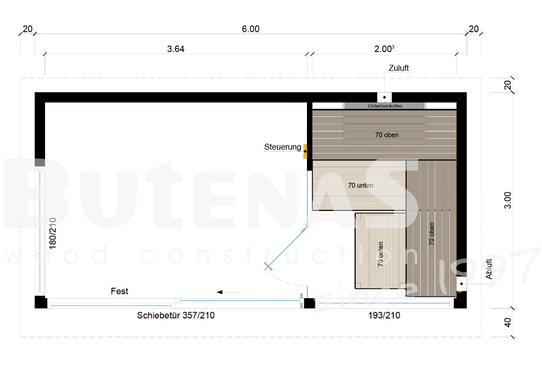 - Größe (LxBxH) ca.: 3,00 m x 6,00 m x 2,70 m