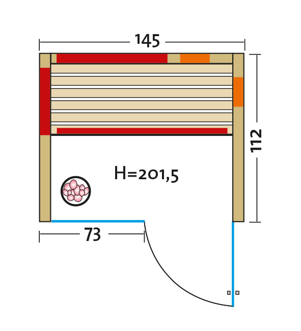 - 🔥 Heizelemente: 3 Flächenheizungen (910 W), 2 VITALlight-ABC-Strahler (2 × 350 W)
