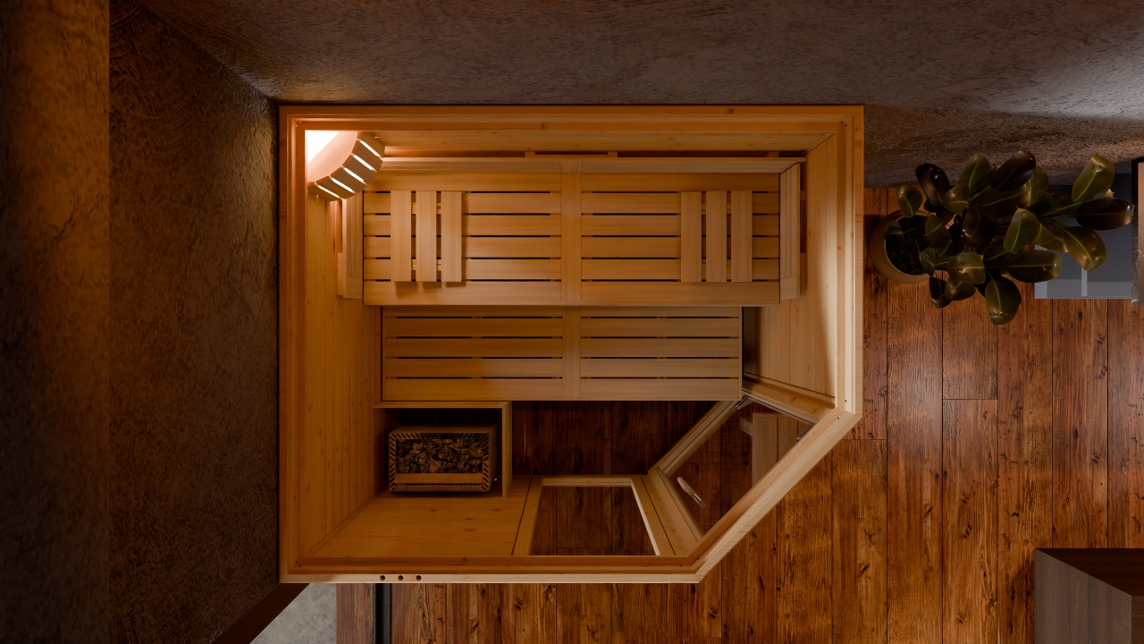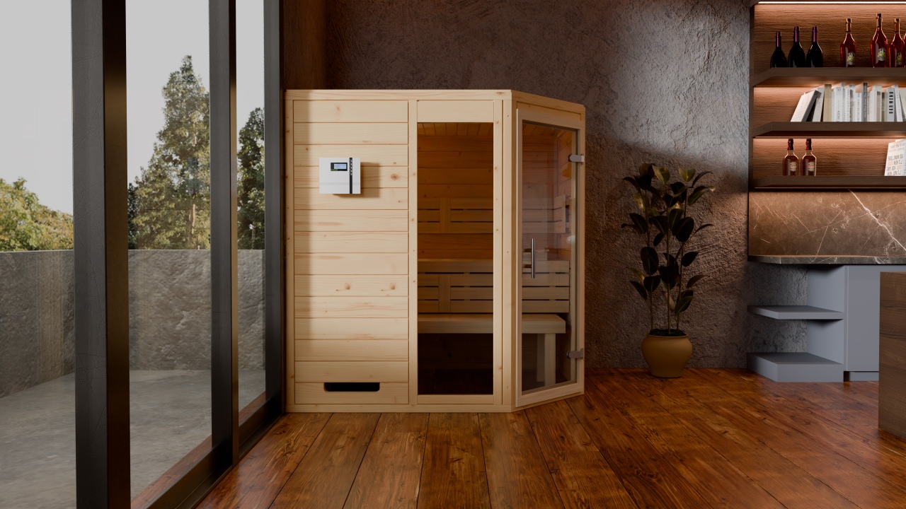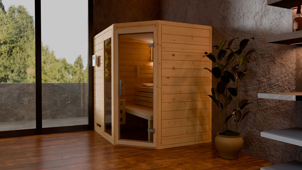 🪵 Sauna Espoo 5-Eck – Massivholz-Innensauna im Eckdesign