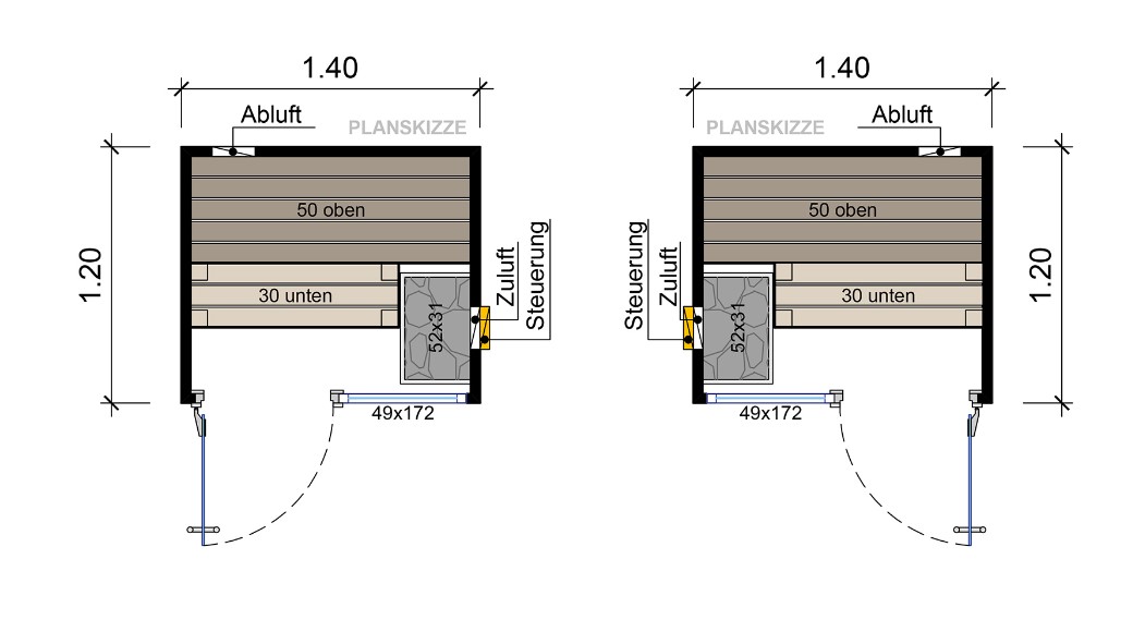 - 2 Saunaliegen/Hocker – untere Liege/Hocker verschiebbar