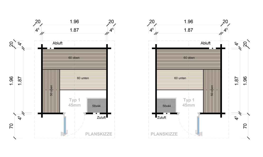 - Die hohe Wärmespeicherkapazität der Massivholzsauna gewährleistet ein mildes und erholsames Saunaklima