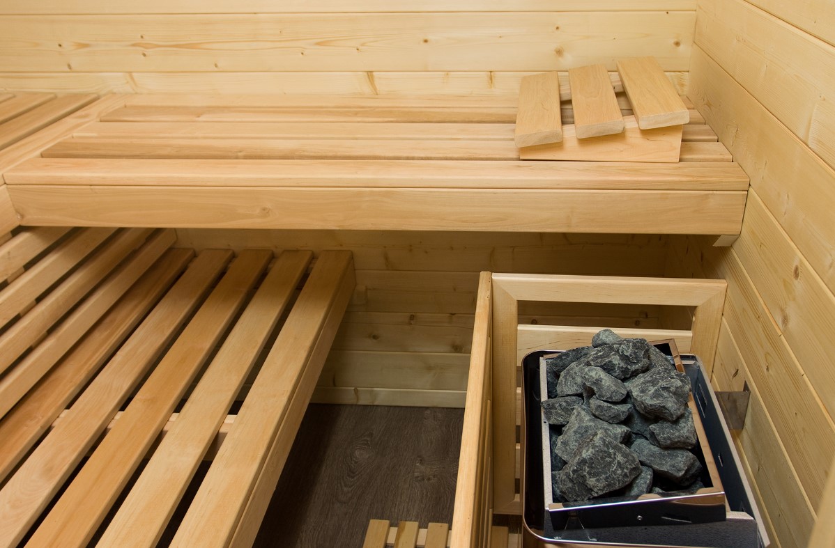 - Die hohe Wärmespeicherkapazität der Massivholzsauna gewährleistet ein mildes und erholsames Saunaklima