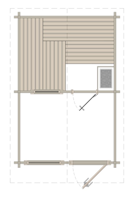 - Innen und außen mit 16 mm Softline Saunaprofilholz verkleidet