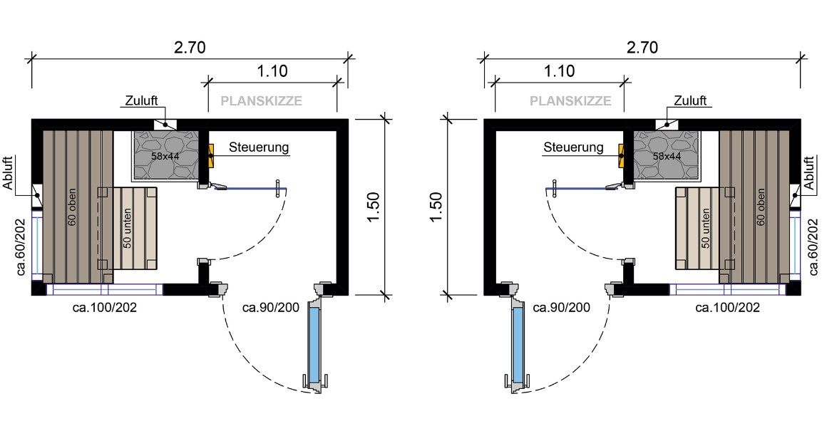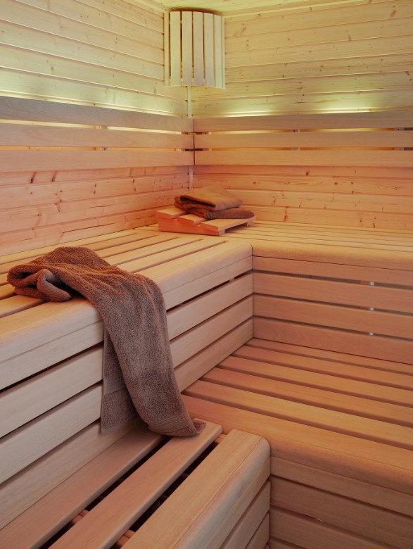 - Zwei bis drei Saunaliegen, untere Saunaliege verschiebbar