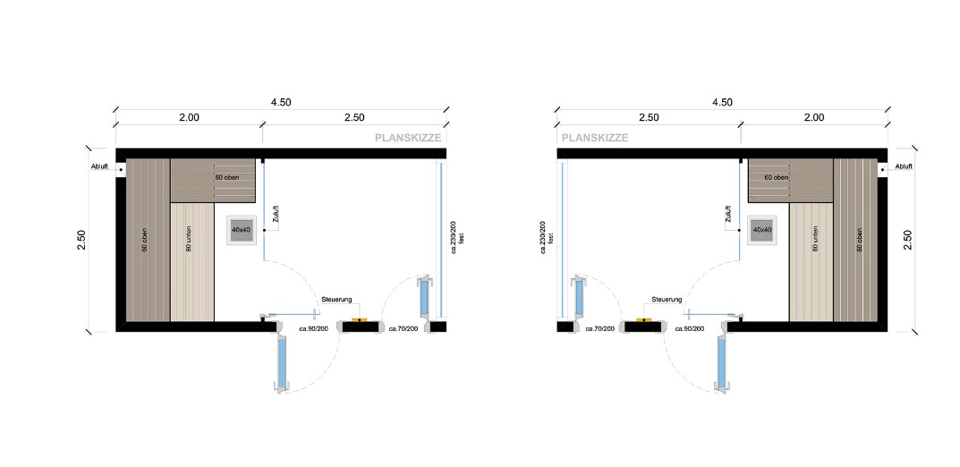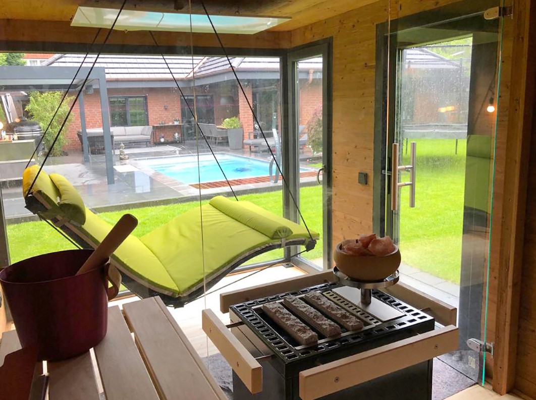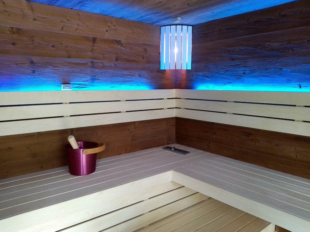 - Drei Saunaliegen, untere Saunaliege verschiebbar