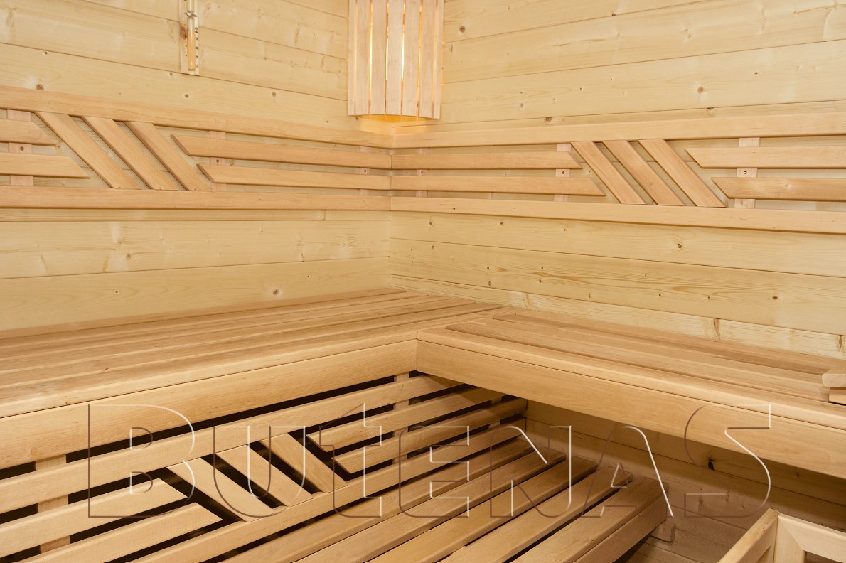 - Wahlweise 4-Eck oder 5-Eck Sauna im Blockhaus (in der Größe 1,60 m x 1,96 m oder 1,96 m x 1,96m)