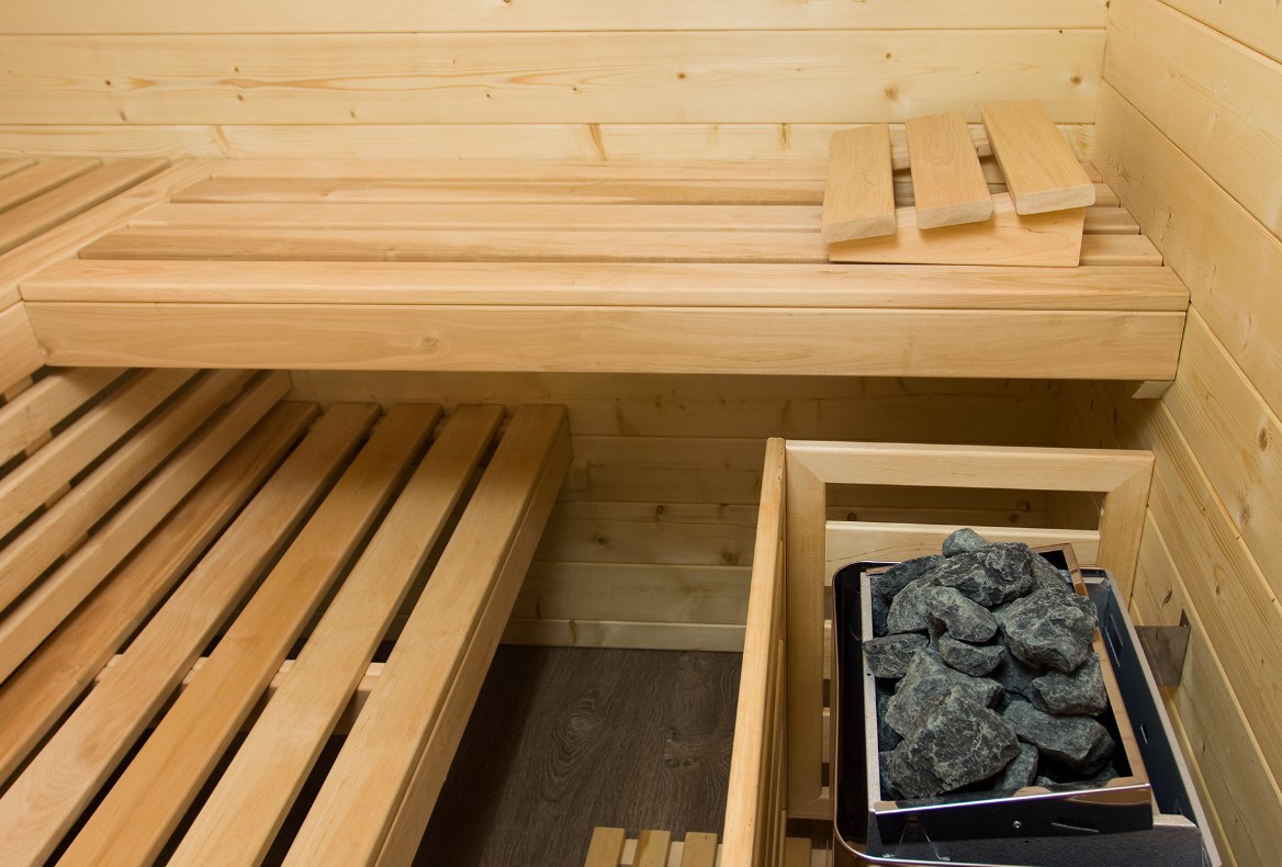 - Sauna in der Größe 2,20 x 2,20 m 4- oder 5-Eck