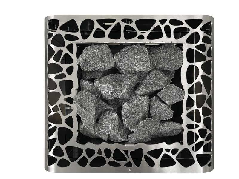 Der Saunaofen verfügt über einen Steinkorb