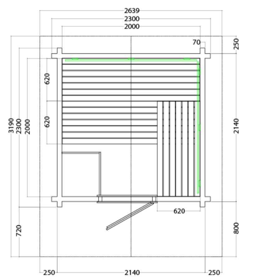 Für Entspannung und Erholung im eigenen Garten sorgt die Gartensauna Lava. Genießen Sie Ihr Sauna-Erlebnis im Freien und entspannen Sie sich unter freiem Himmel. Eine optisch attraktive Outdoor-Sauna bietet einen tollen Blickfang und lädt Sie auch an kalten Wintertagen zu unvergesslichen Saunaerlebnissen ein.Bei Saunen gibt es eine einfache Formel: Je dicker die Holzwände sind, desto besser speichern diese die Wärme – und desto besser ist das sogenannte Sauna-Klima. Wenn also eine Sauna 70 mm dicke Bohlen verbaut, dann wissen Sie: Hier bekommen Sie nicht nur eine exzellente Qualität, sondern auch eine optimale Wärme-Speicherung und ein hervorragendes Sauna-Klima.Dazu punktet die "Lava" mit einer umfangreichen Innen-Einrichtung aus hochwertigem Linden-Holz. Außerdem verfügt die Sauna über einen separaten Vorraum und einen großen Dach-Überstand. Sie können dieses Modell mit oder ohne eine Hochleistungssaunaofen erwerben. Das Wichtigste auf einen Blick: Kabinengröße (L / B / H): 341 x 230 x 210cm Für 6-7 Personen geeignet Gartensauna aus massiver 70mm Fichte Weitere Produktmerkmale und Technische Daten:Eigener Vorraum Fußboden 19 mm BodendielenGrundrahmen imprägniertDachüberstand seitlich und hinten 250 mm, vorne 800 mmIsolierglasfenster Fixverglasung 1190 x 690 x 70 mmESG Glastür vom Vorraum in die Sauna 590 x 1915 x 8 mmVersperrbare Holztüre mit Glas außenInneneinrichtung „Prestige“ aus Linde3 Bänke 620 mm breit2 Kopfstützen2 RückenlehnenZwischenbankverblendungOfenschutzgitterLampe mit Lampenschutz ohne LeuchtmittelTüre (70 x 1,88 x 4,0 cm) links mit IsolierglasEmpfohlene Ofenheizleistung: 8-10,5 kWWeitere hochwertige Saunen finden Sie hier!Bei Fragen wenden Sie sich gerne an unseren Kundenservice