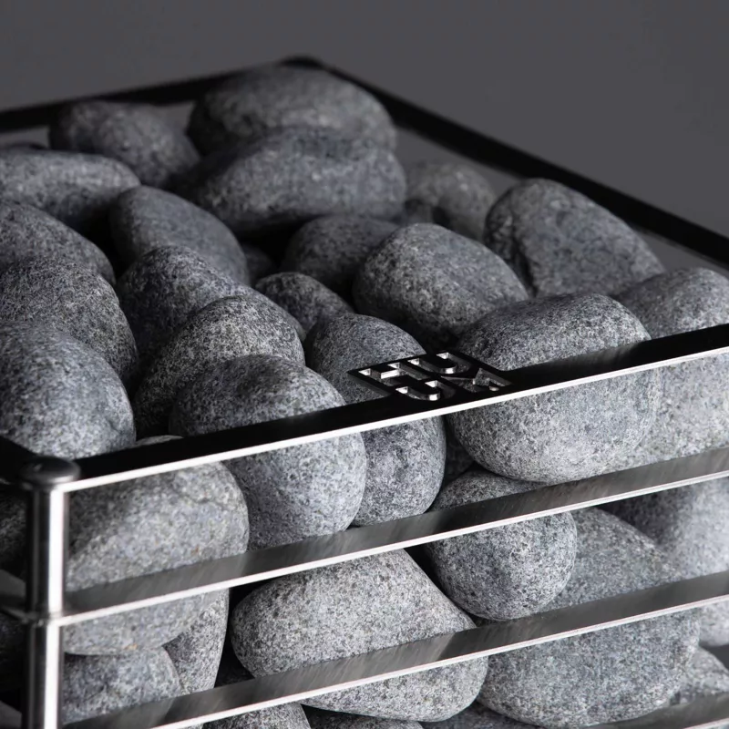- Großes Fassungsvermögen für 75 kg Saunasteine.