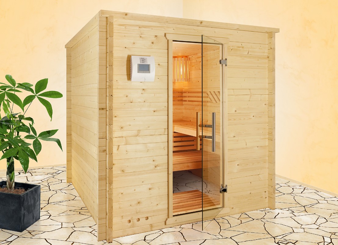 Die Massivholz-Sauna FINJA überzeugt durch klassisches Design, eine hochwertige Verarbeitung und flexible Maße. Dank der robusten Blockbohlenbauweise aus Polarfichte genießen Sie ein mildes, erholsames Saunaklima und haben gleichzeitig die Möglichkeit, Ihre Sauna individuell zu gestalten.