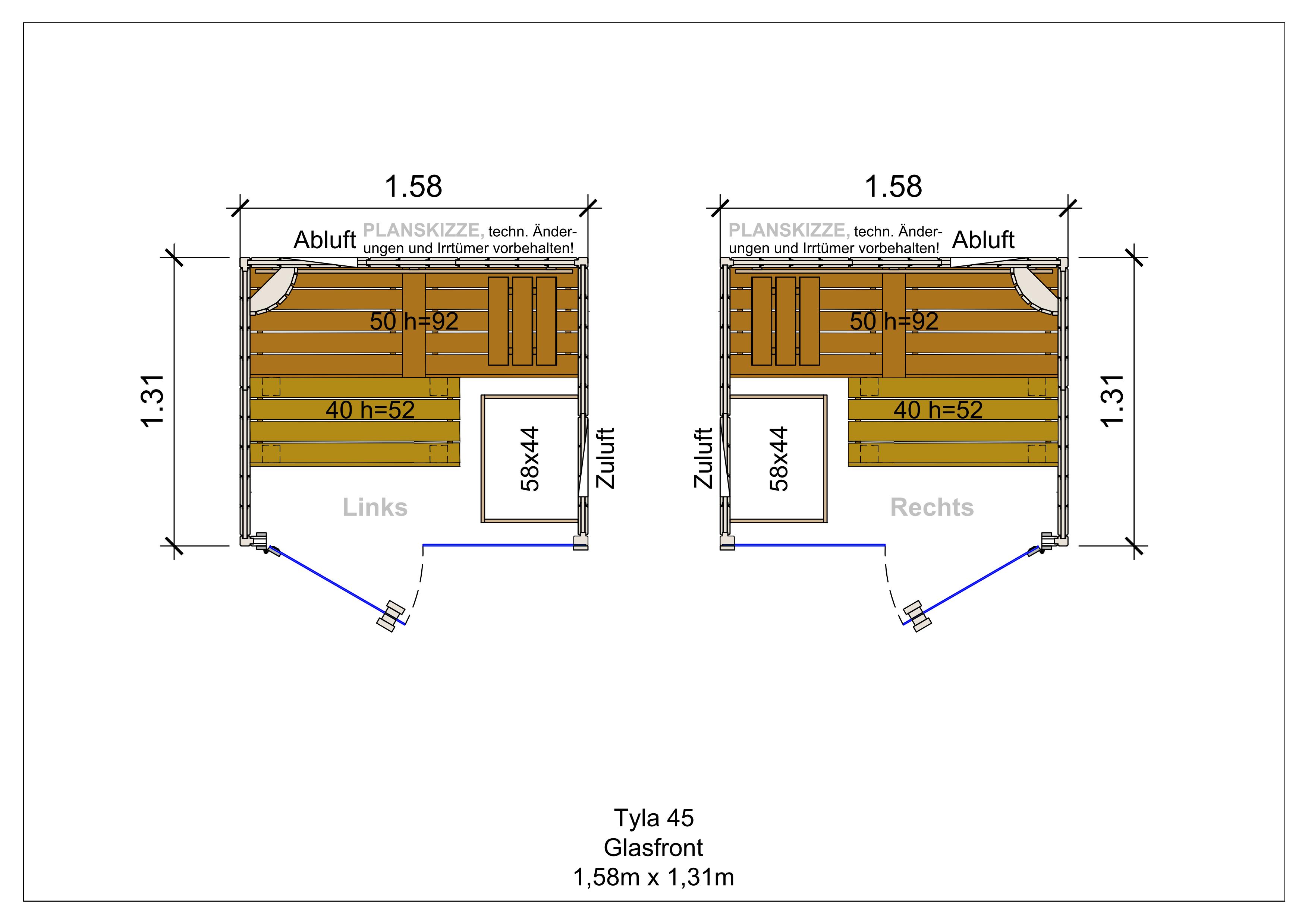 Wähle Breite und Tiefe flexibel – von 144,5 × 130 cm bis 252,5 × 252,5 cm. So passt deine Sauna perfekt in dein Zuhause.