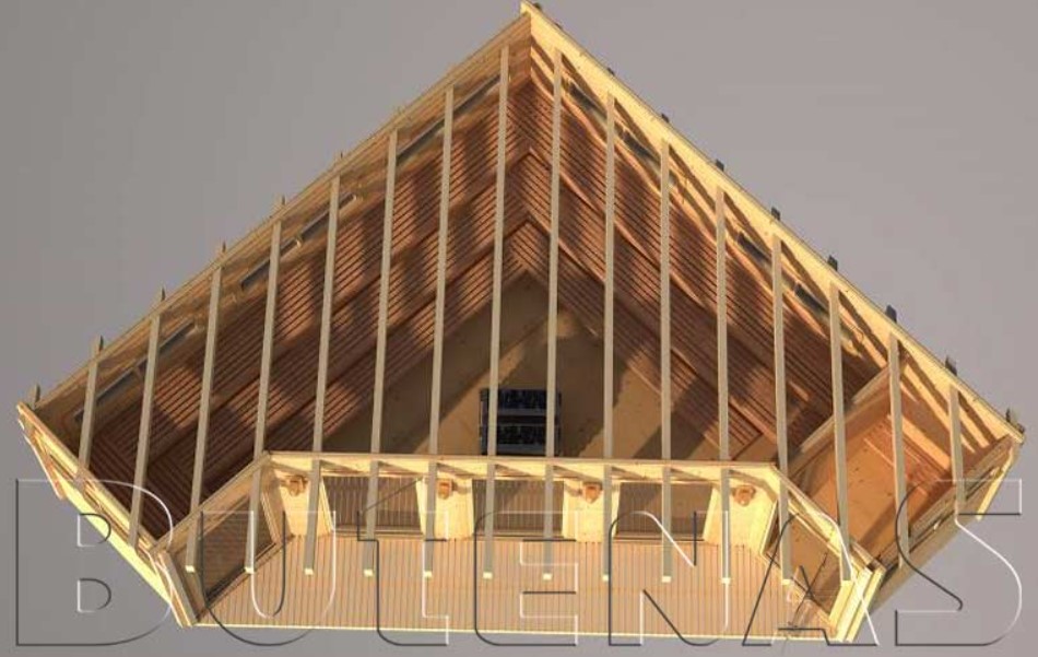 - 20 mm Nut-und Federdachschalung auf verleimten Dachsparren inkl. Giebelblenden (ohne Dacheindeckung)