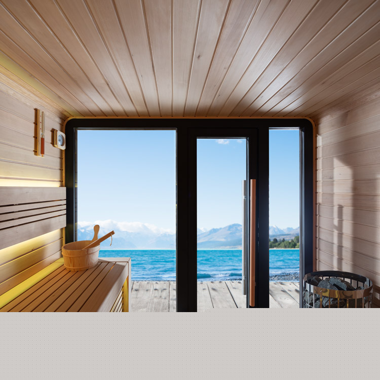 Der Saunacube wird aus kanadischem Hemlockholz gefertigt – einer der besten Holzarten für den Saunabau. Hemlock ist harzfrei, formstabil und besitzt eine gleichmäßige, helle Optik, die auch bei hohen Temperaturen angenehm bleibt.